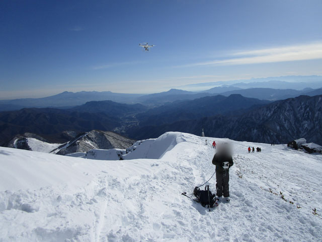 肩の小屋付近では、ドローンを飛ばしている人がいた。