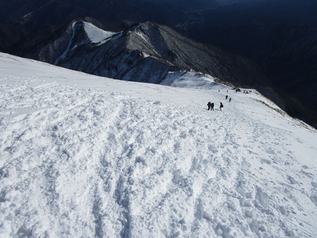 雪はやわらかく、滑落の危険性はやや低い。