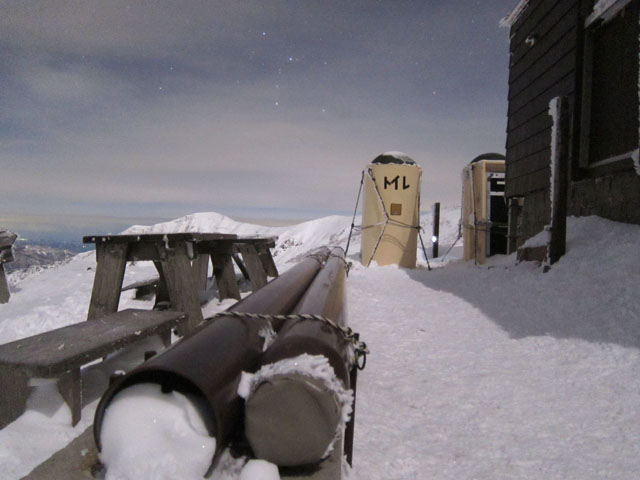 小屋の中は暖かく、モンベル#0(マイナス7℃まで)で問題なかったが、