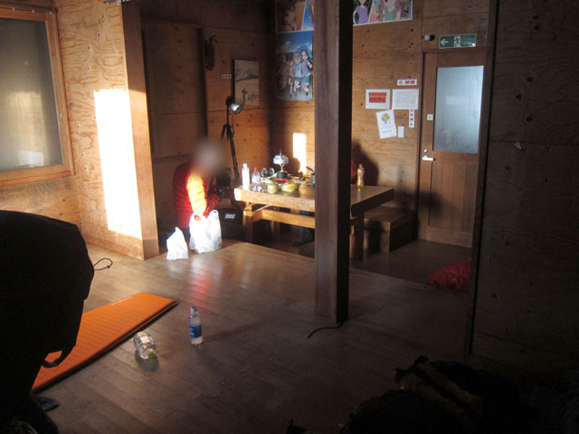 肩の小屋は、食事スペースと寝床が分かれていてなかなか快適。
