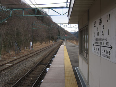 ロープウェイ駅から歩いて20分で土合駅。
