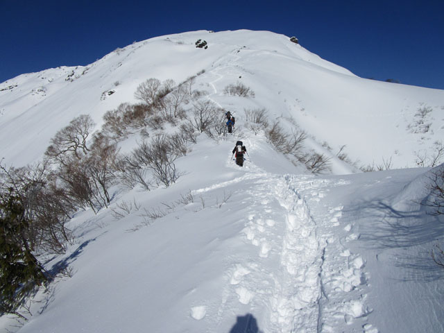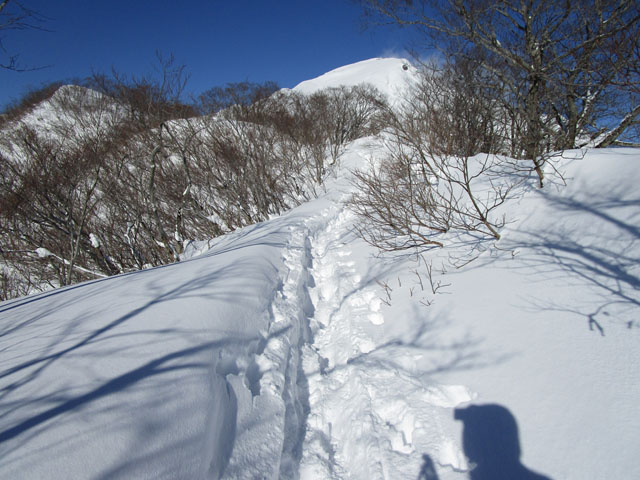 オキの耳〜山頂間はトレースなし。ラッセルする。