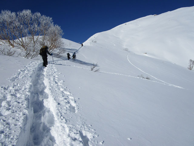 この先にもトレースが見えるが、BCスキー隊のもの。