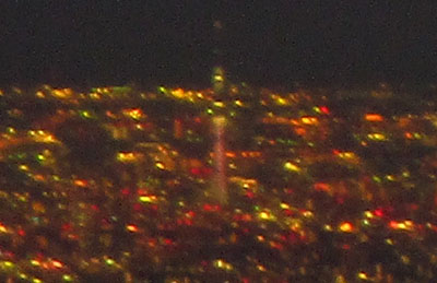 写真上部に光の筋が3本あるのは、羽田空港に進入する航空機だ。