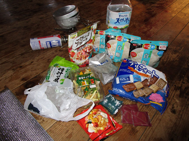 雲取山荘で水を調達できなかったため、2LのPETボトル1本でさびしい。