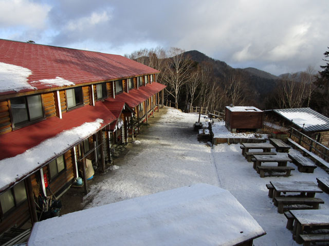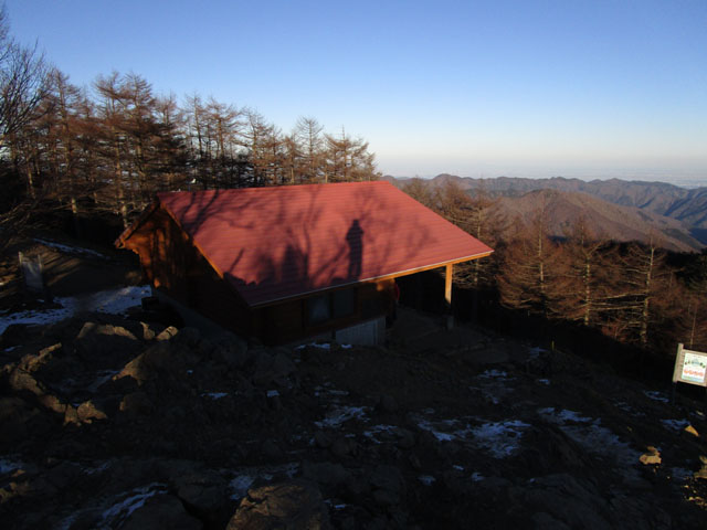 頂上をスルーして小屋へ。