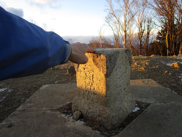誰もいないので三角点に置いて自撮りだな。