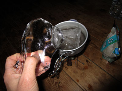 工夫してこのように氷を途中で調達した。