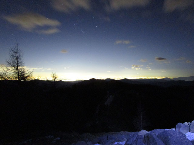 オリオン座が見える。(写真中央上左)