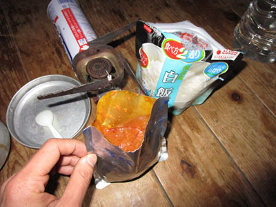 雲取山荘で水を調達できなかったため、2LのPETボトル1本でさびしい。