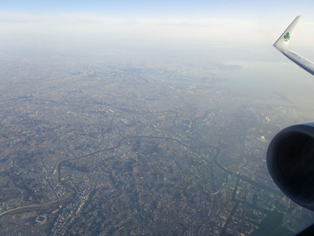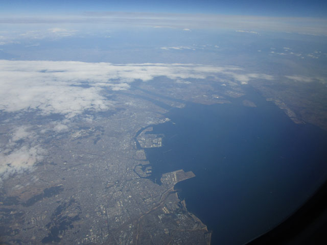 日の出は0650ごろなので、東京伊丹の朝一の便(0610発)などになると、