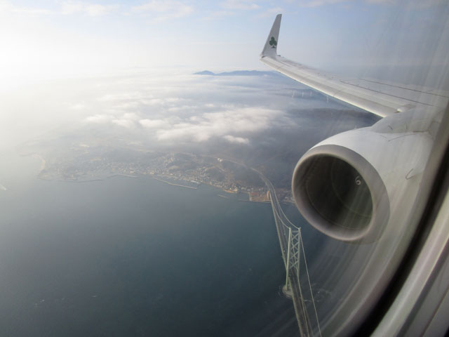 明石海峡大橋を高度900mで通過して神戸空港へ。