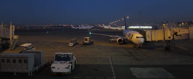 伊丹の運用時間が7時〜なのでやむをえないが、
