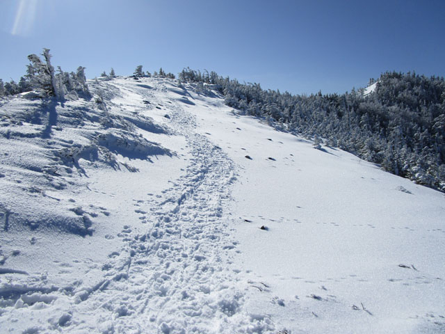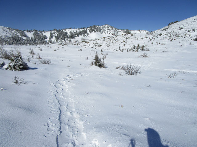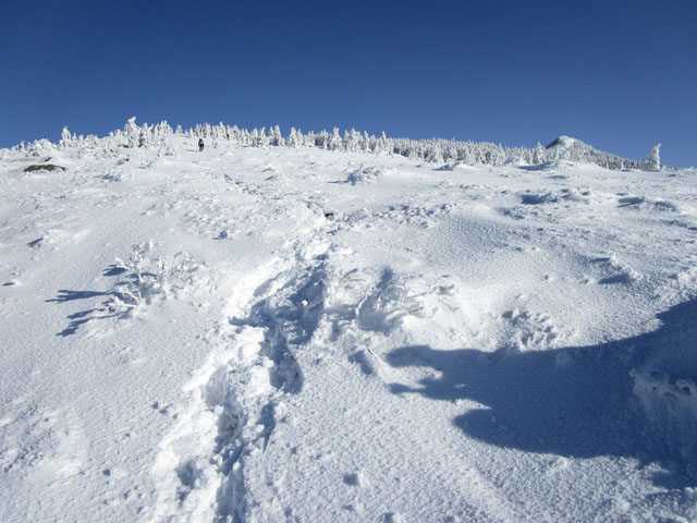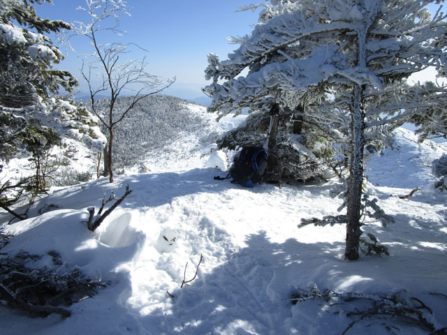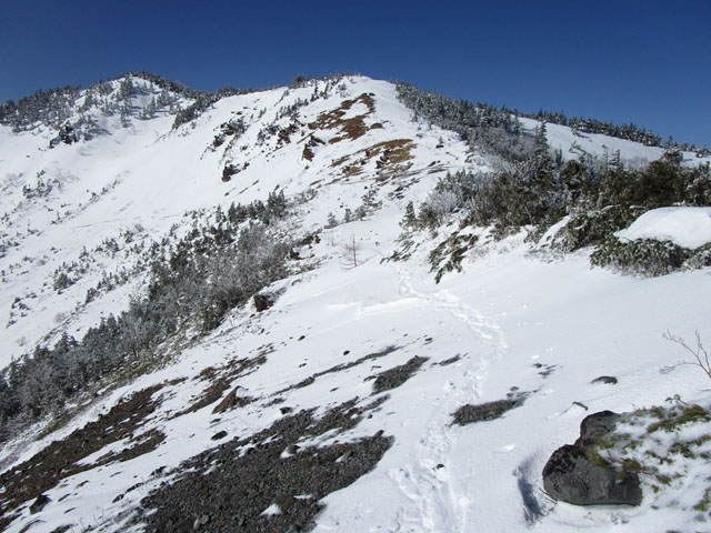 リッジに雪庇がついていて危なさそう。積雪期は通る人はまずいない。