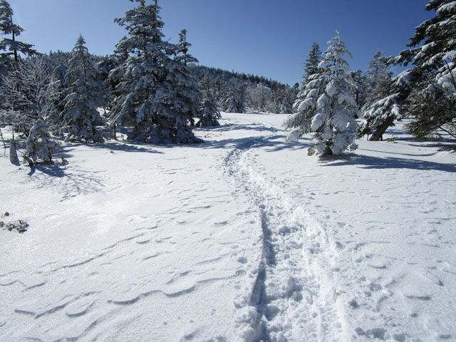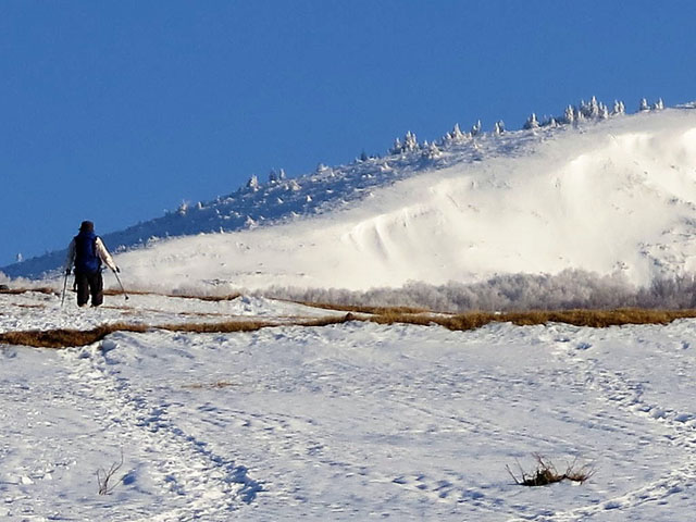 登山道がなく、ブッシュが積雪で覆われる冬季しか登れない。