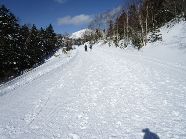 スノーシューのトレースのため、つぼ足ではやや沈む。