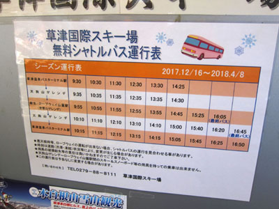 ロープウェイ山麓駅からはシャトルバスで草津バスターミナルへ。