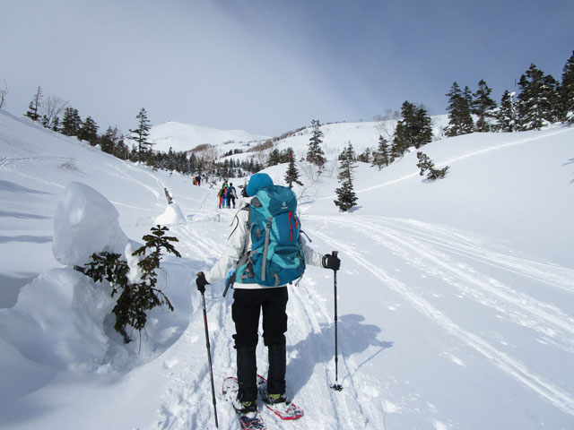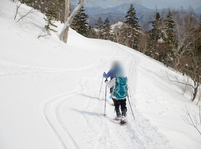 トレースはあるが、スキーがほとんどなのでスノーシューでもやや沈む。