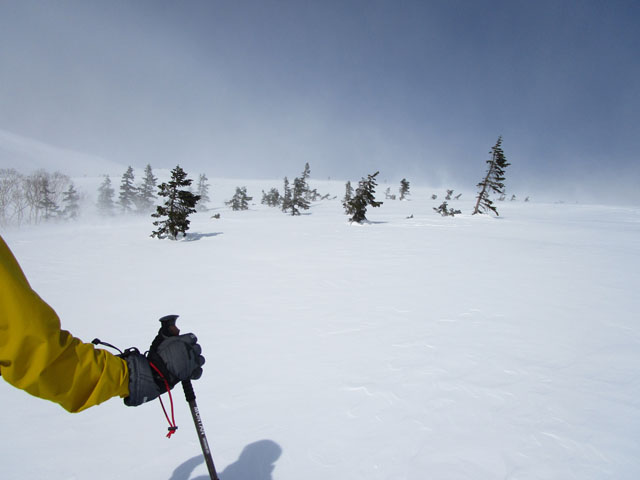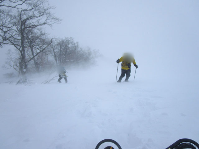 風も強く雪崩も不安。