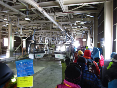 ゲレンデトップまでは、ゴンドラとアルプス第1リフトを乗り継ぐ。