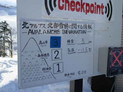 五竜や八方と異なり、栂池は尾根上ではないので、雪崩には要注意。