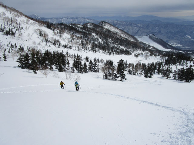 天狗原に出るあたりの斜面は斜度がきつく、ここも雪崩がやや不安。
