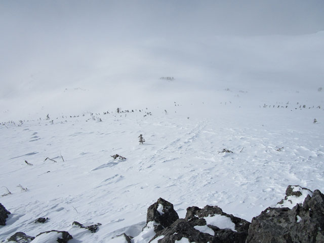 1850m付近で復帰したあとは、尾根をたどりスキー場方面へ。