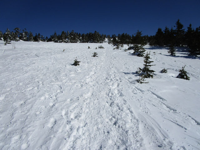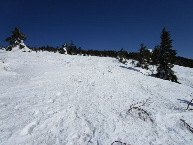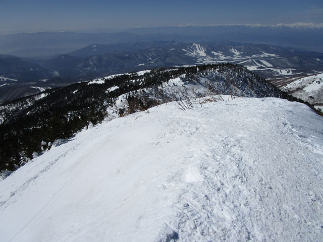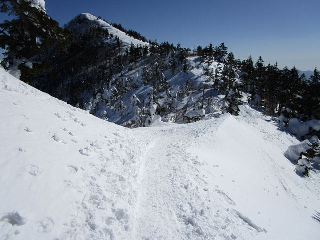 リッジに雪庇がついていて危なさそう。積雪期は通る人はまずいない。