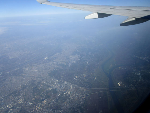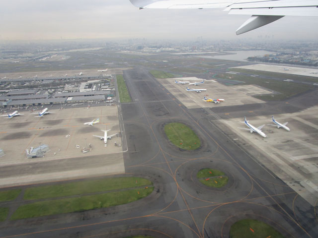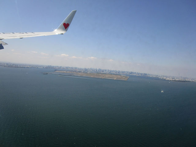 着陸直前には左旋回して羽田空港D滑走路へ。