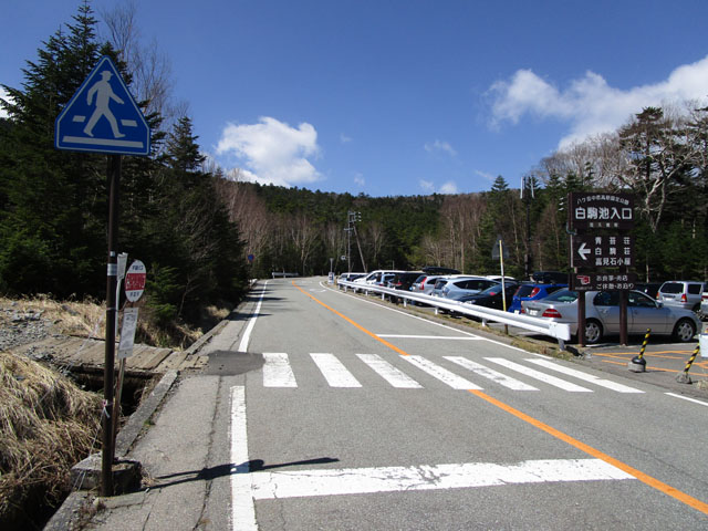 白駒池の駐車場に停め、ここから歩き始める。
