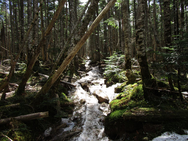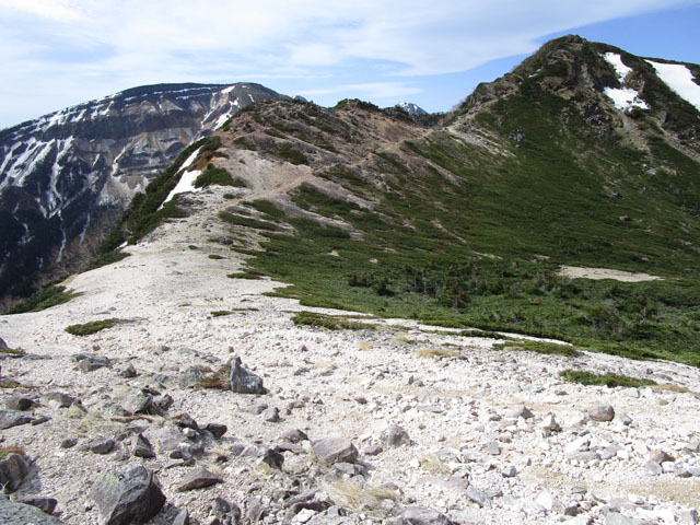 主稜線ルートは、雪が残っていて危ない。