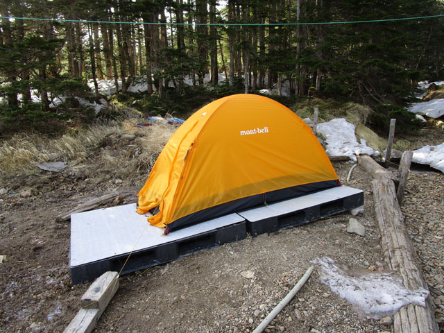 黒百合ヒュッテテント場は、数は少ないもののスノコを利用可能。