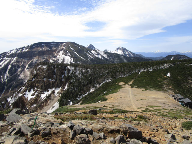 小屋の裏手にある2433m標高点まで登る(登り5分)と、景色がいい。