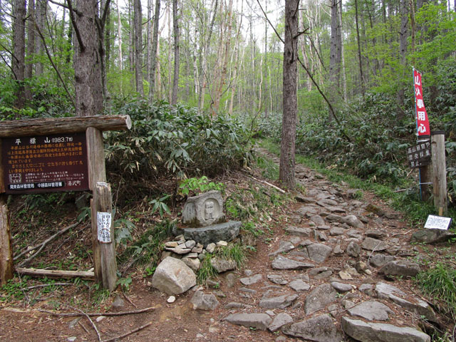 林道を1時間ちょい歩き、平元新道の登山口へ。
