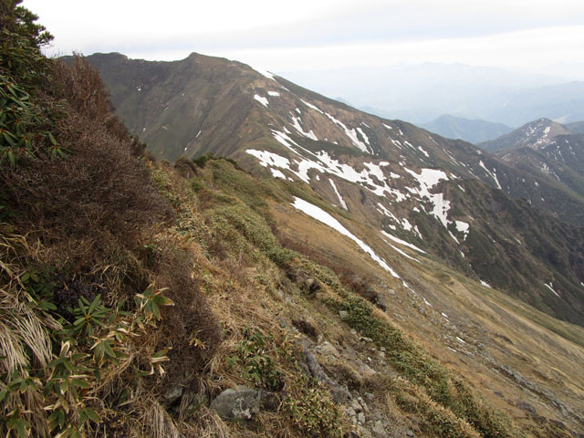 途中、残雪を何回か通過するが、いずれもアイゼンを使わなかった。