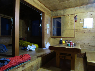 小屋内は暖かく、モンベル#3でぬくぬく熟睡。20時就寝。