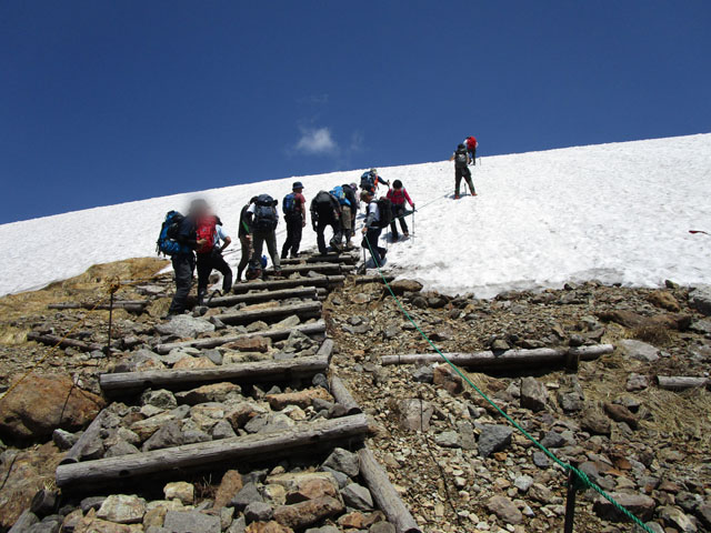残雪があると非常に危険で、避難小屋が雪で埋もれ使用不能のため、
