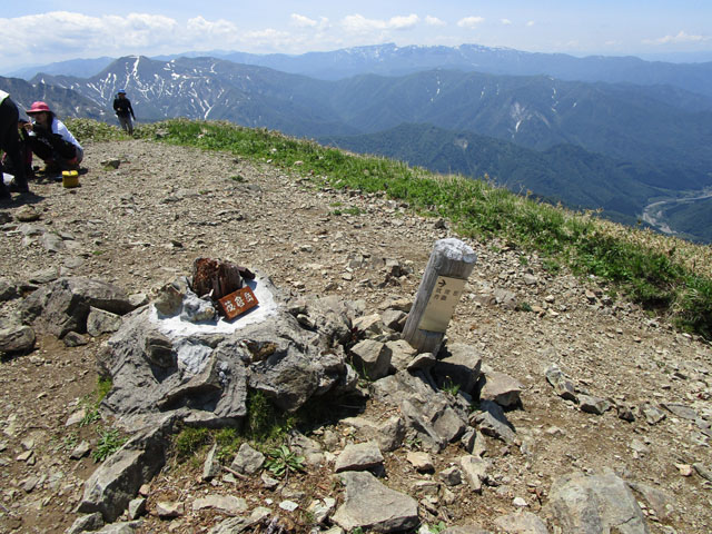 一ノ倉岳の三角点は登山道から外れた笹薮の中にある。
