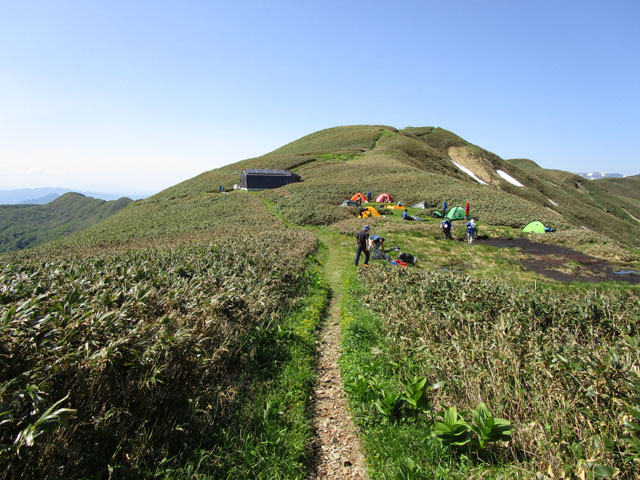 蓬ヒュッテにはテント場があり、10張程度可能だ。500円。
