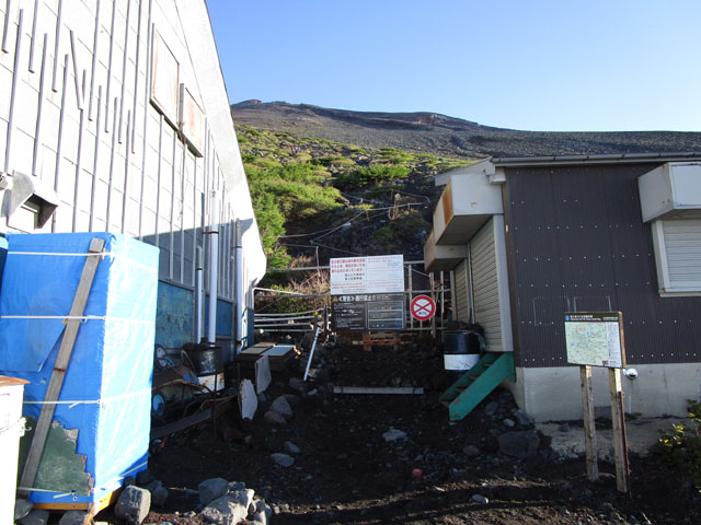富士宮口の小屋は、通行止めのバリケードを置いたりしていて、
