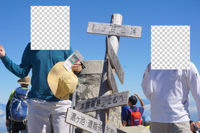 山頂標識は行列に。