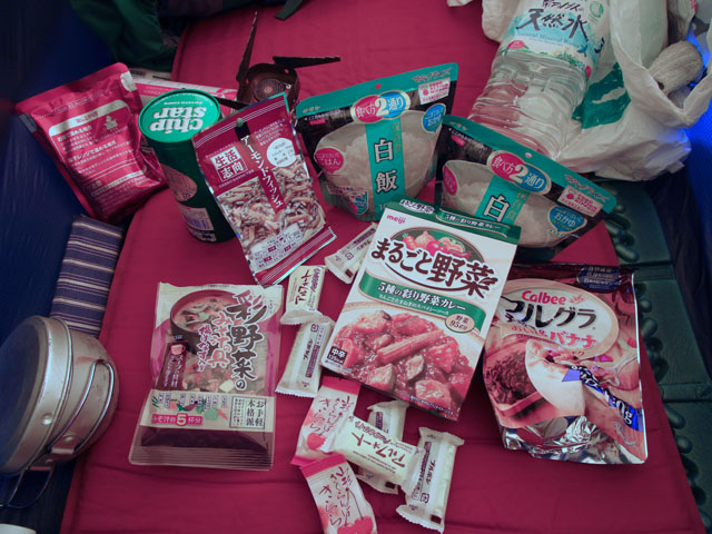 雨のあいだ、やることもないので湯を沸かし、夕飯を食べる。