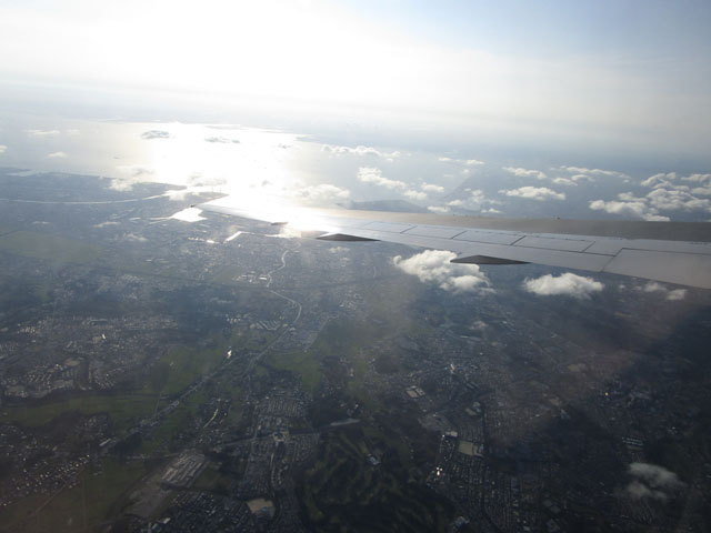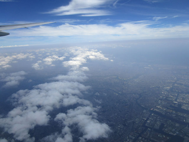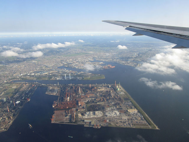 千葉市上空からは、羽田空港を目指して西へ一直線。