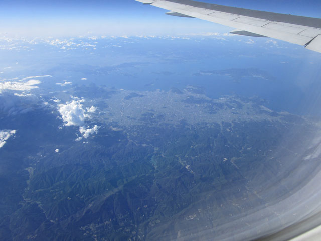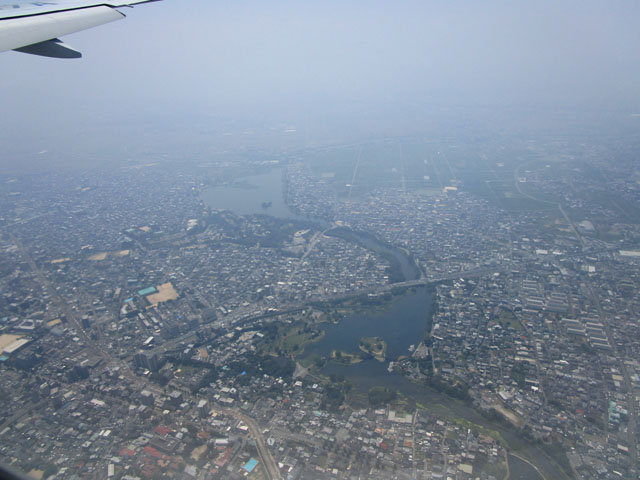いったん熊本市街上空を遊覧飛行状態で半周して熊本空港へ。