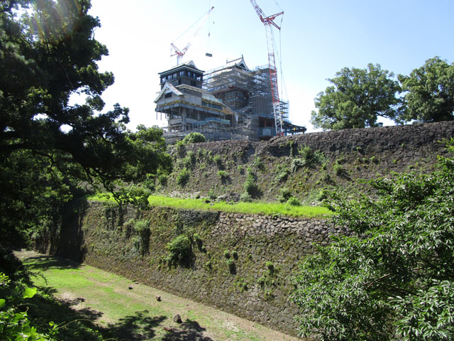 天守閣は修復工事中だ。