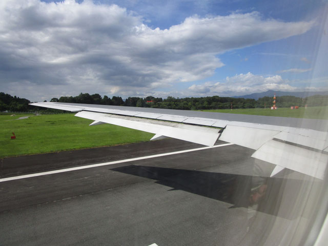 スポットを離れて15分くらい離陸待ちしているあいだに機内が暑くなる。