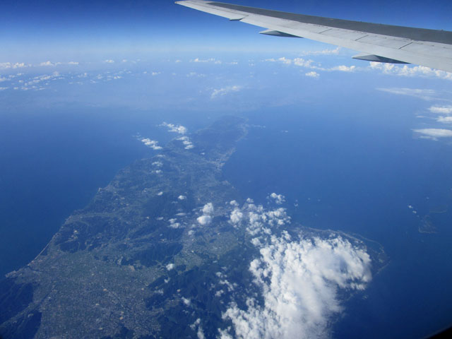 A滑走路から離陸していったん南へ。