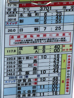定刻ベースでは、0655新宿→1018駒ヶ根IC