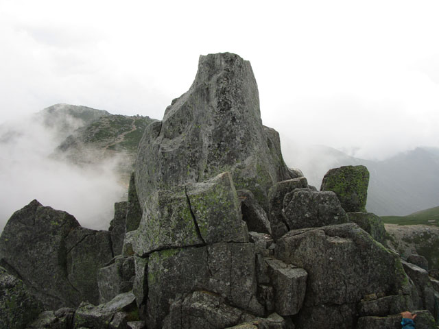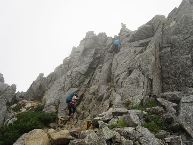 岩場の登り下り、伊那側に切れ落ちた岩を乗り越える場所などもあり、
