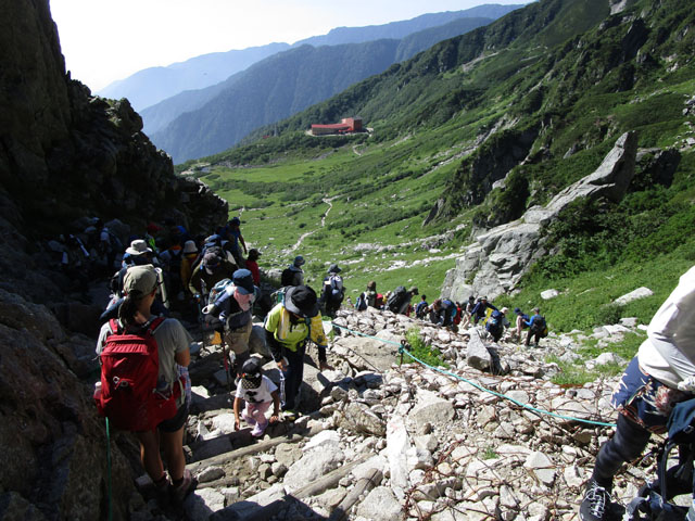 より高いところに泊まれる穂高・槍などは、歩き始めの標高が低いためだ。